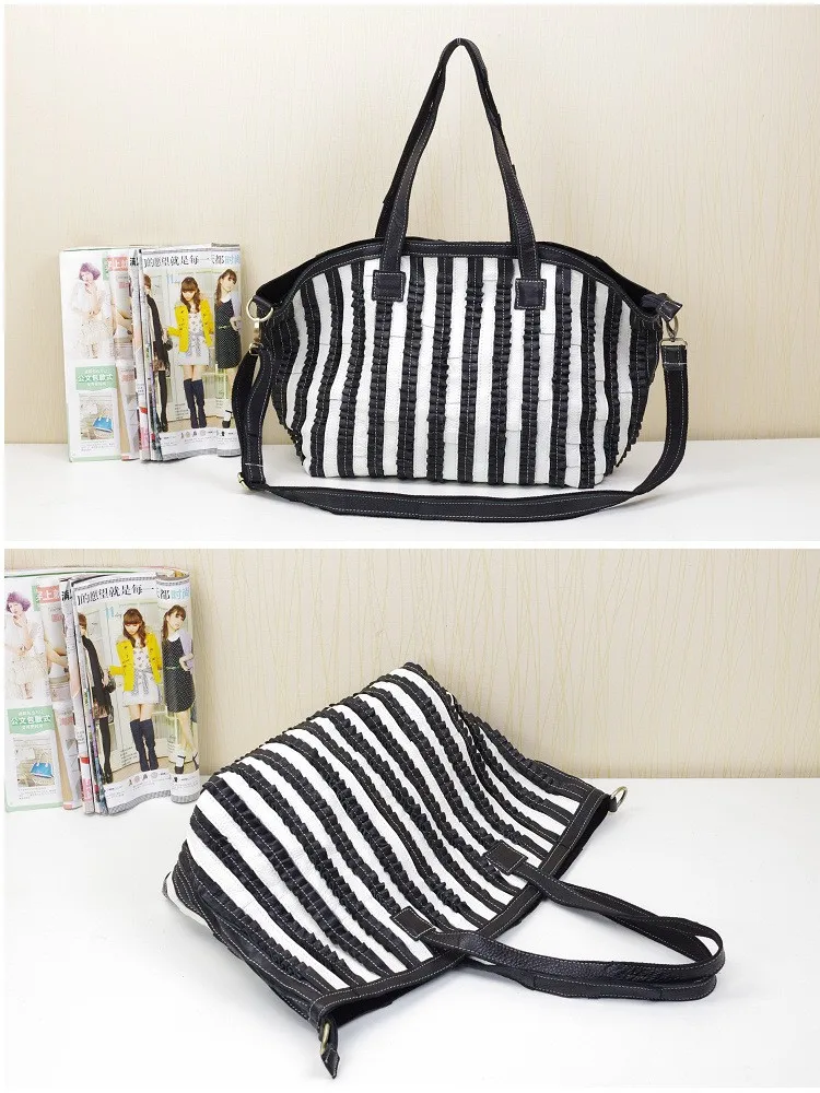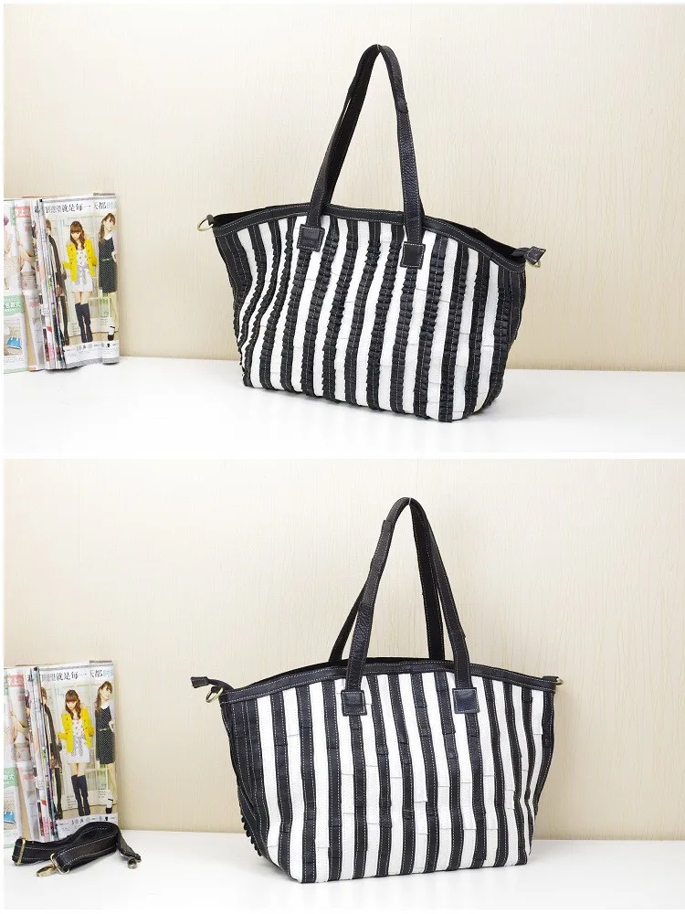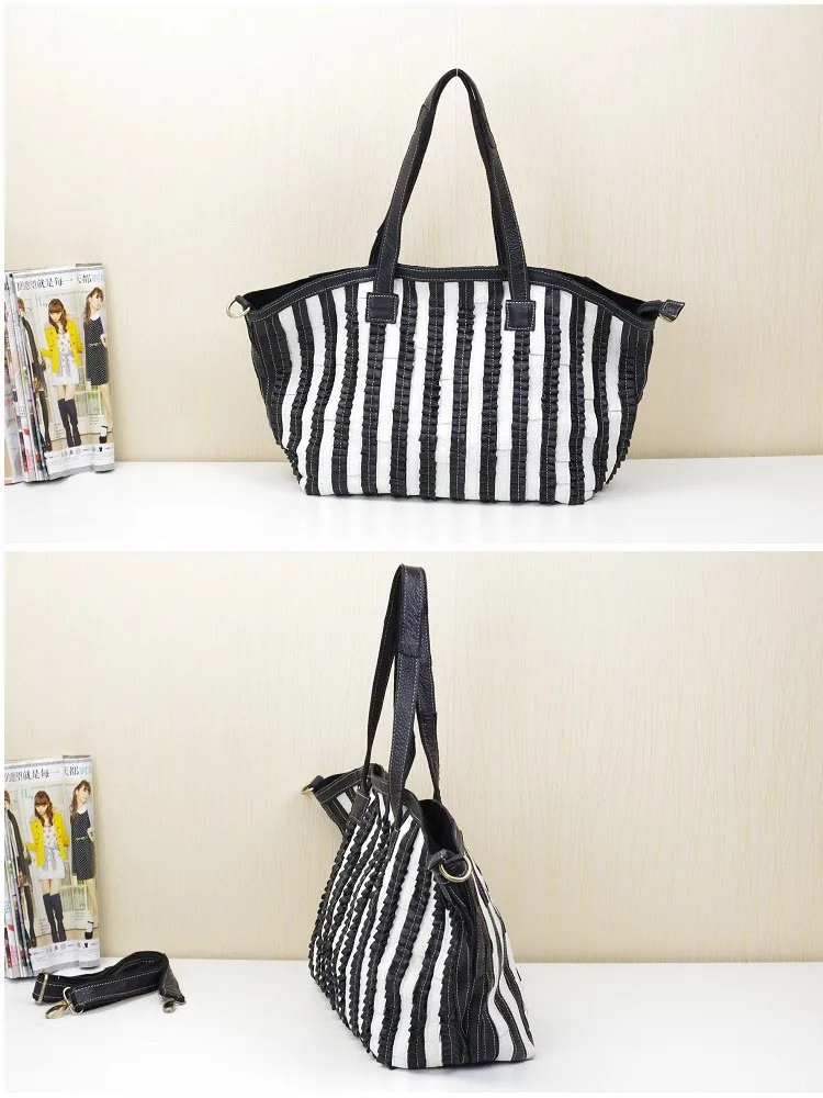 iPinee Leisure All-match Striped Patchwork Women Bags Genuine Leather Large Capacity Women Handbag Cowhide Bag