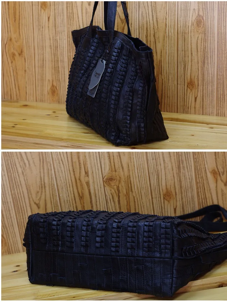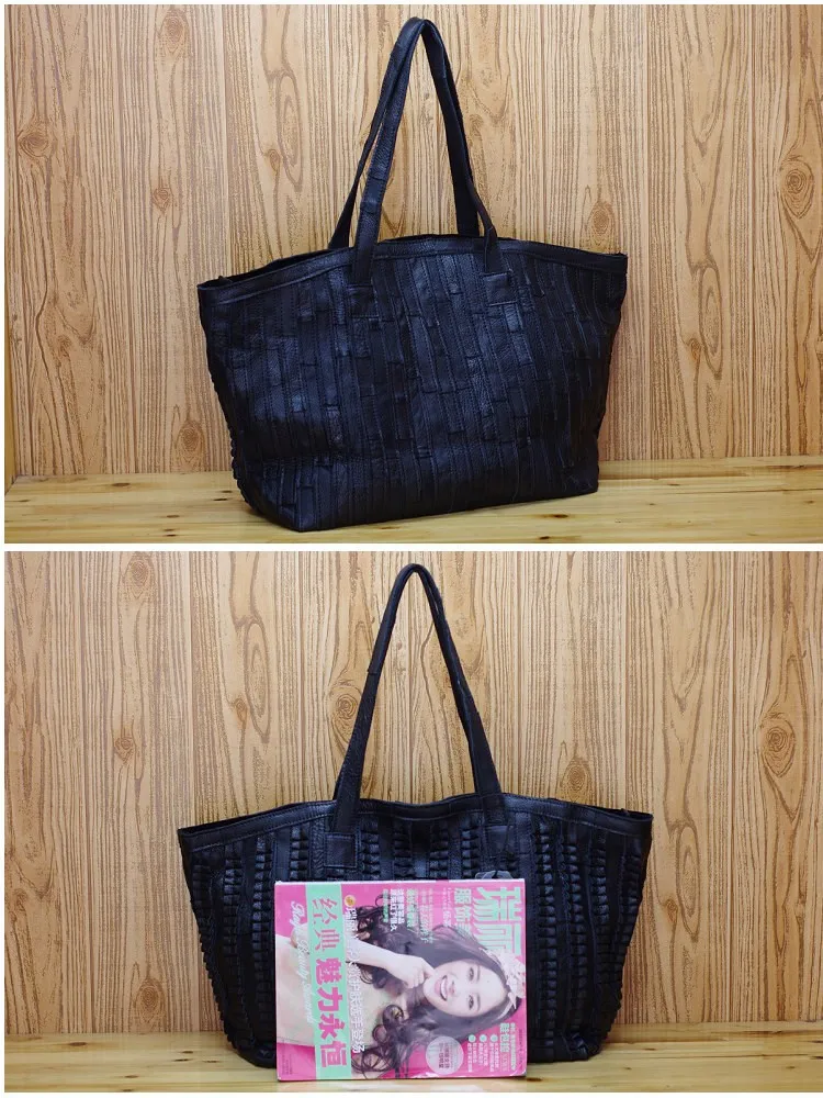 Fashion Genuine Leather Women Handbag Patchwork Natural Cow Shoulder Bag Famous Brand Casual Tote