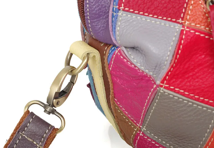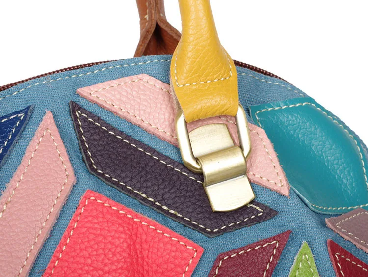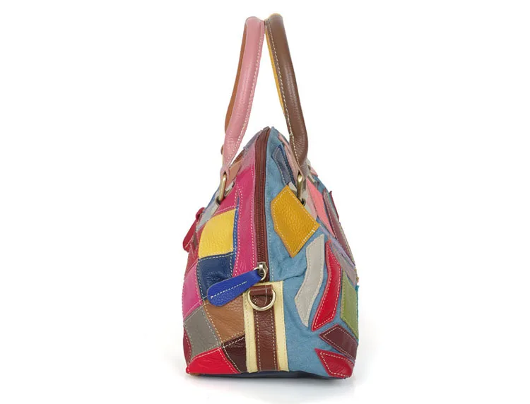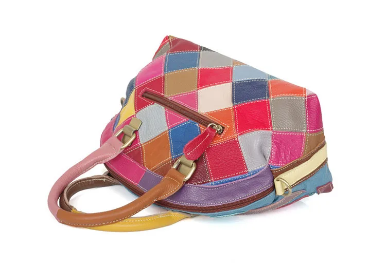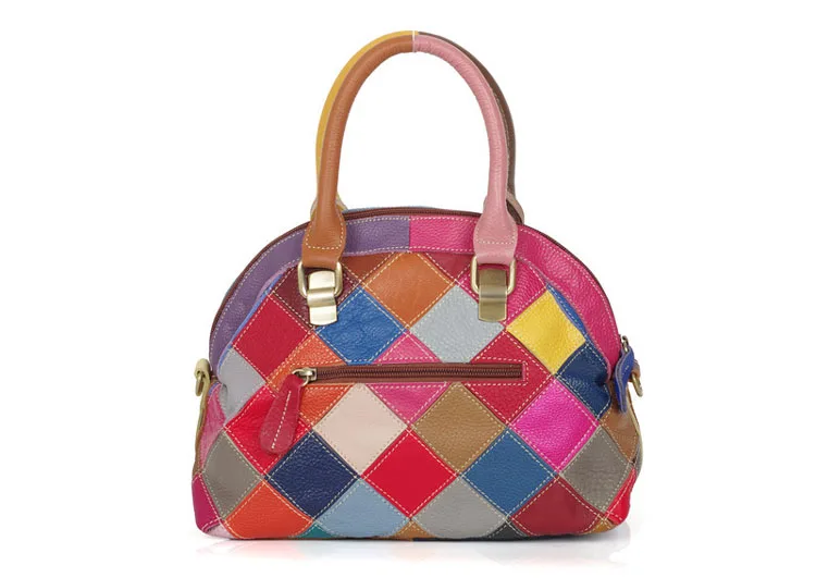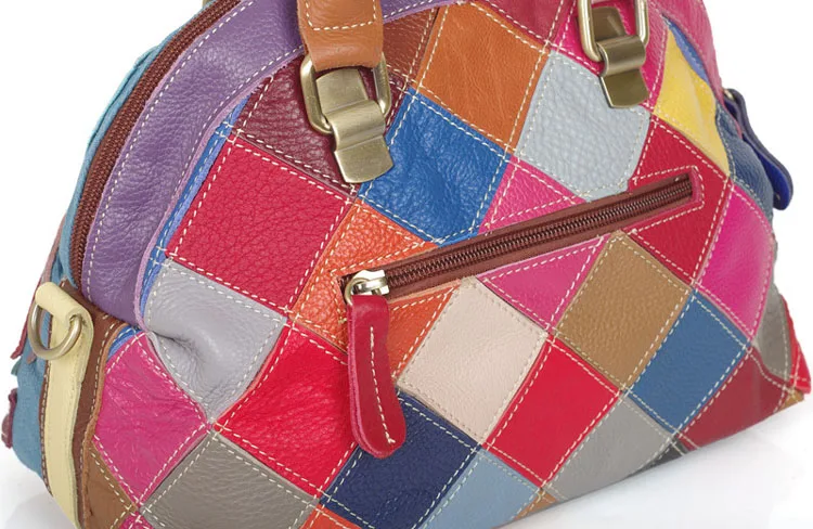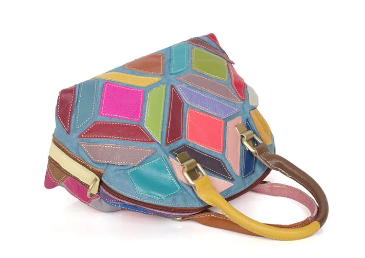 Please Notice: Handbag spliced by random colorful leather blocks, each one are different.