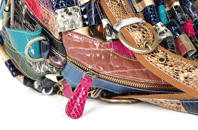 Notge: Please Notice: Handbag spliced by random colorful leather blocks, each one are different.please don’t buy whom will mind.