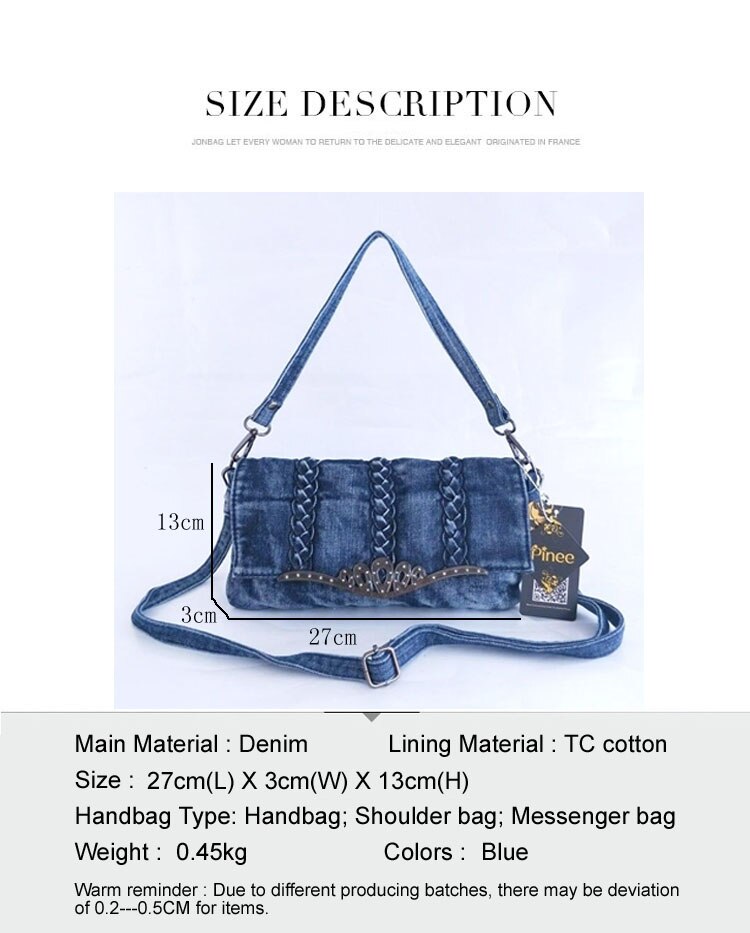 iPinee brand new retro women messenger bags small shoulder bag high quality Denim tote bag small clutch handbags