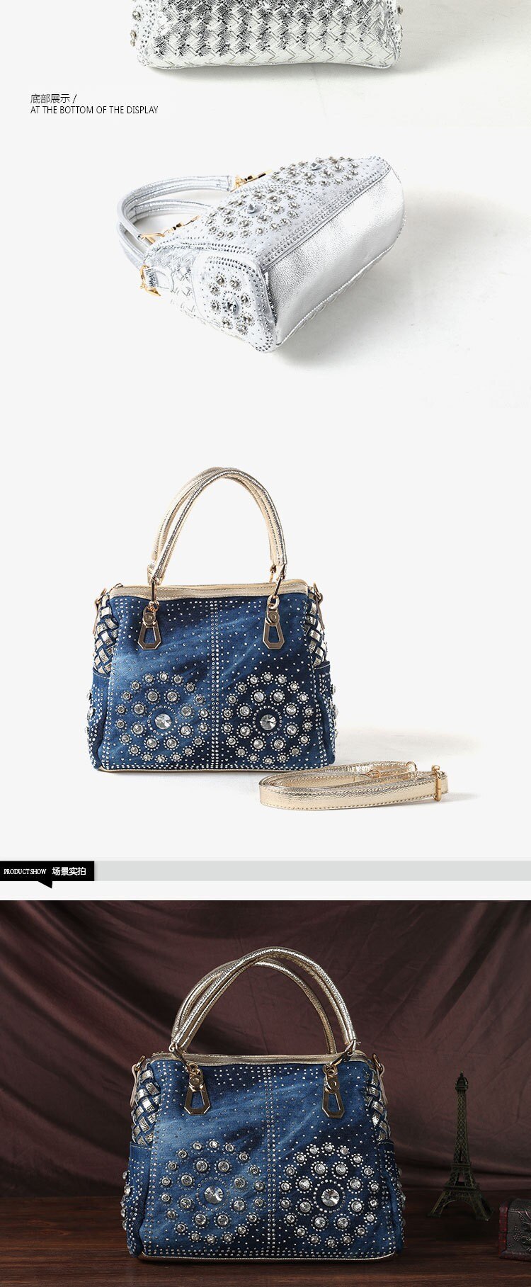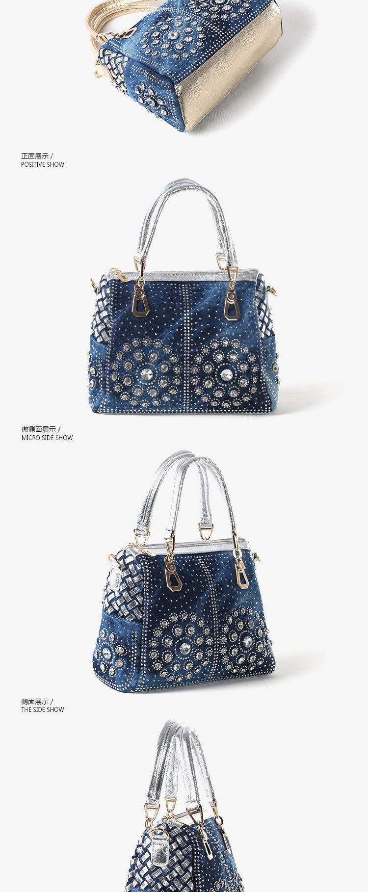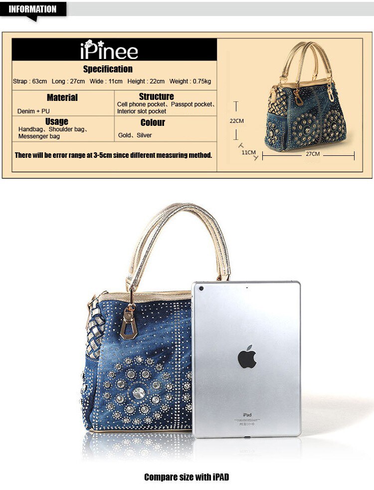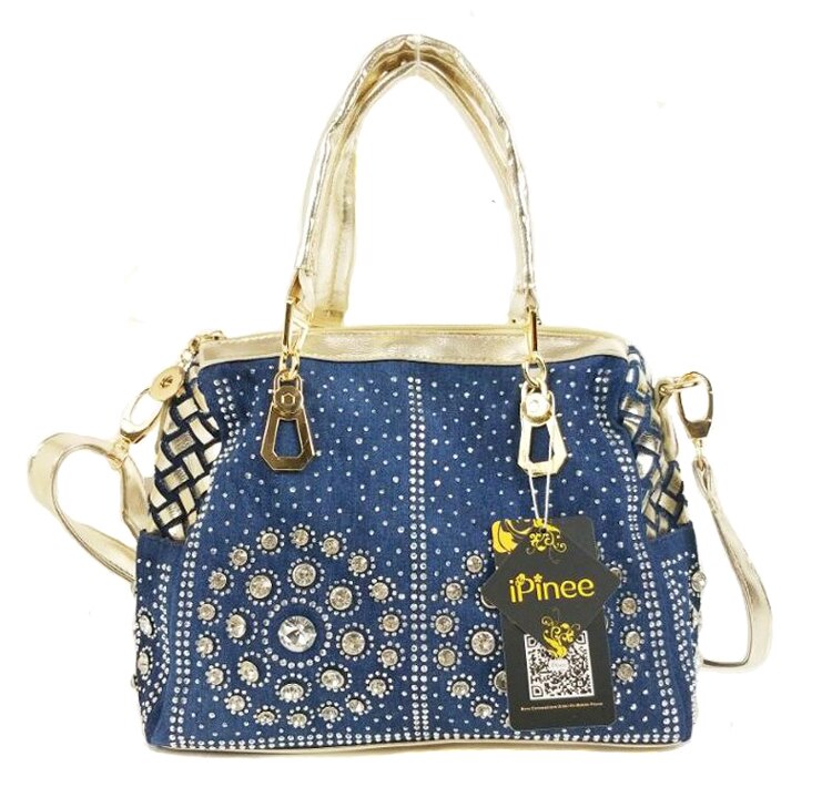 iPinee fashion women handbags designer diamond decoration denim tote bags luxury ladies vintage bag