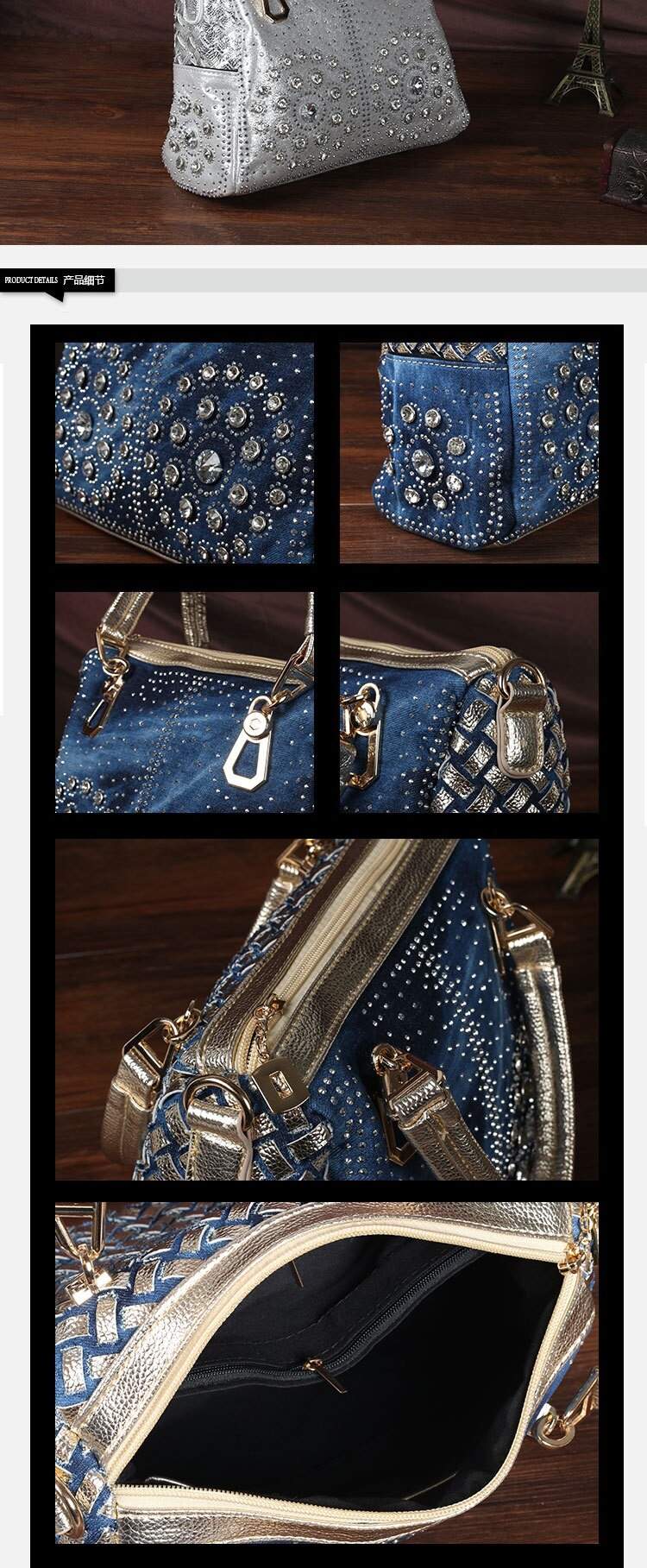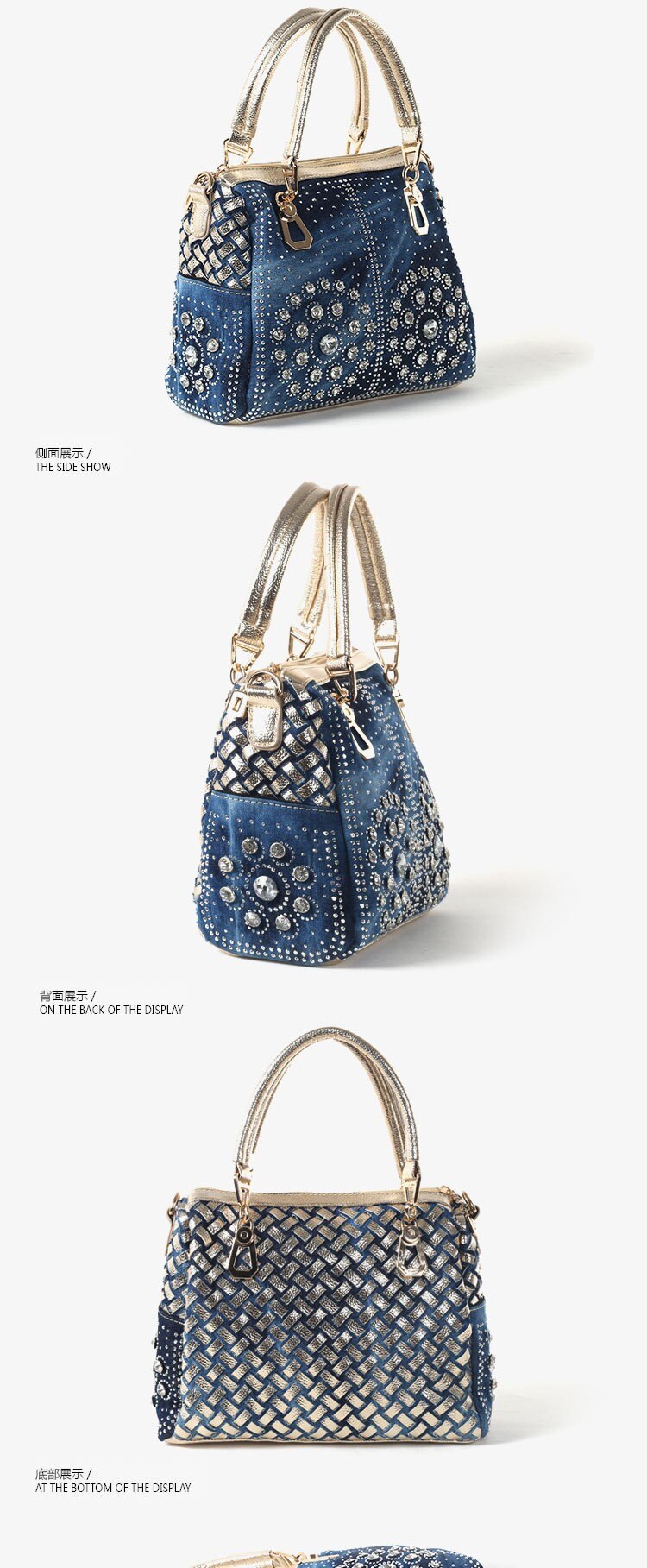 iPinee denim jean casual women handbags designer weaving shoulder bags rhinestone decorative womens messenger bag totes
