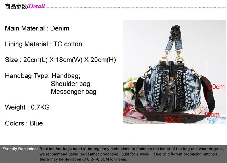 Casual Women Denim Bag Women Small Shoulder Bags Vintage Blue Jeans Crossbody Bag Ladies Purse