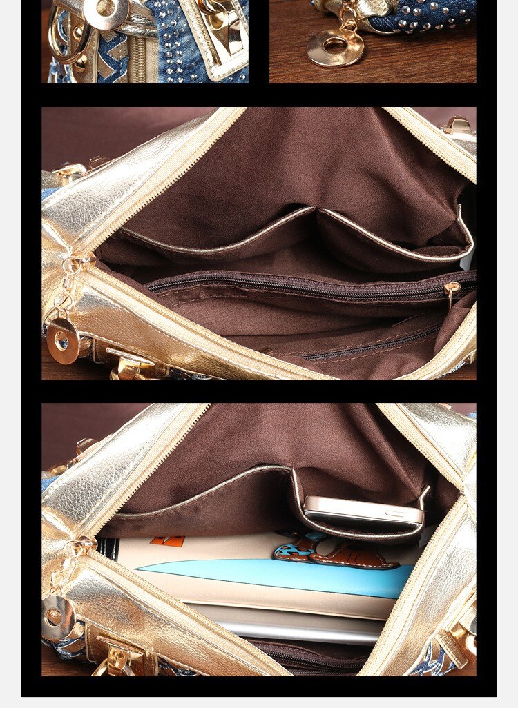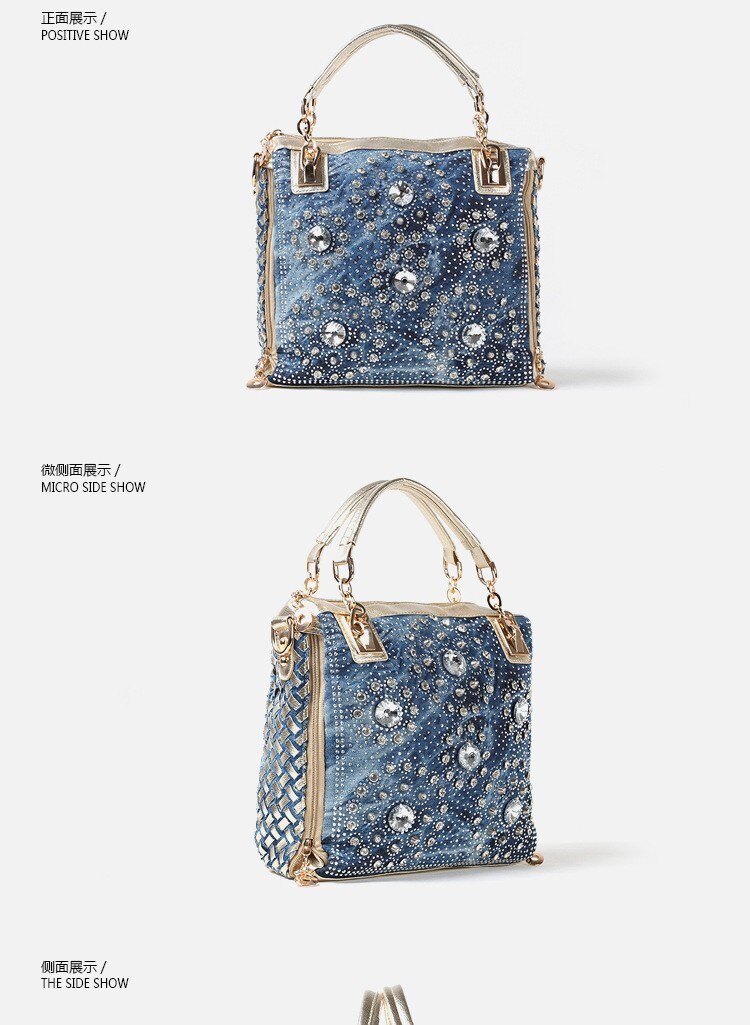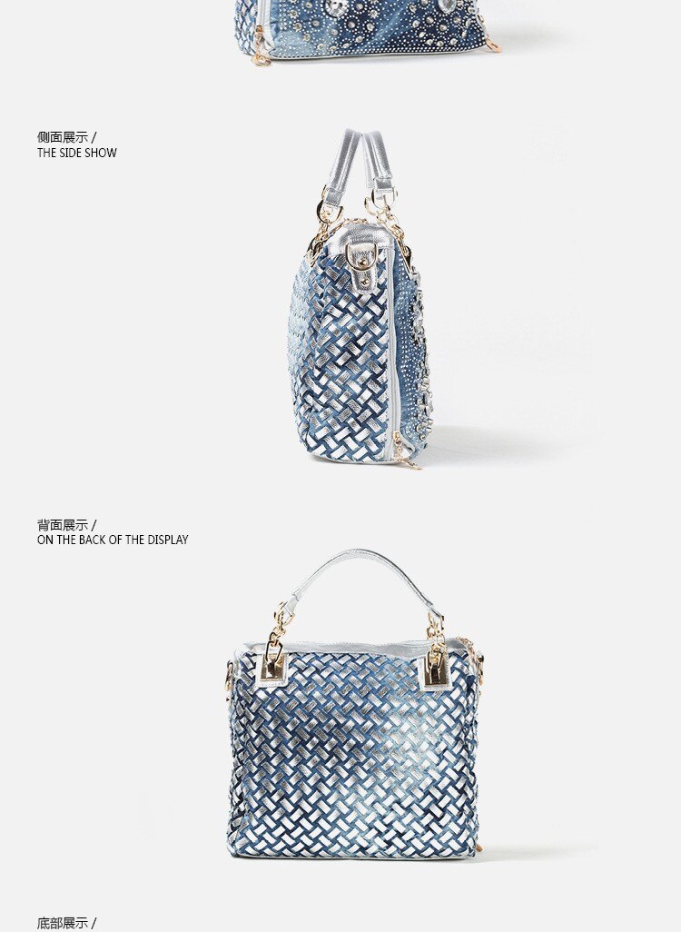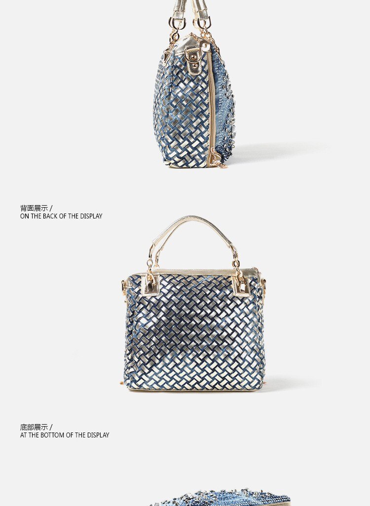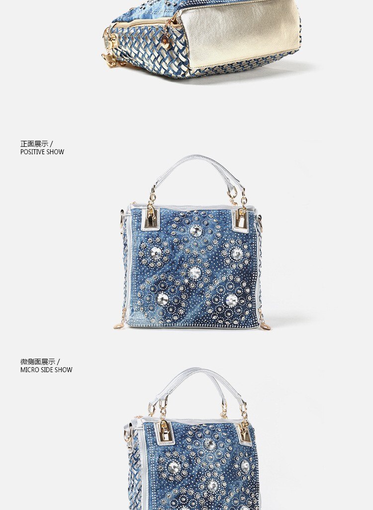 Gold and Sliver denim jean casual women handbags designer weaving shoulder bags rhinestone decorative womens messenger bag totes