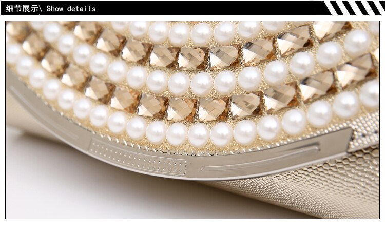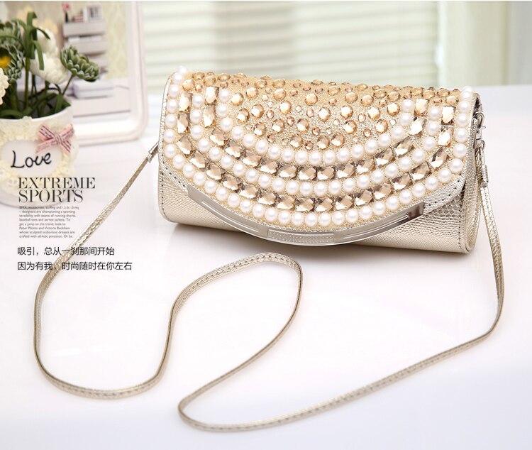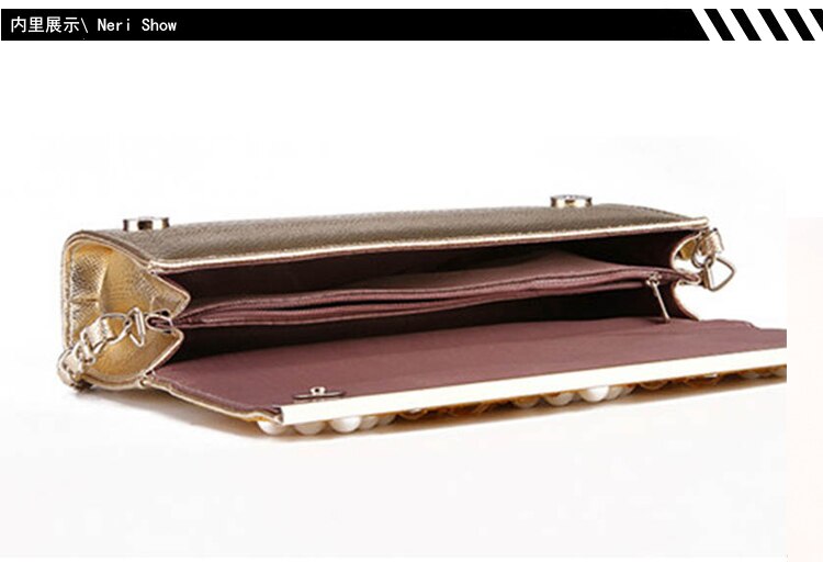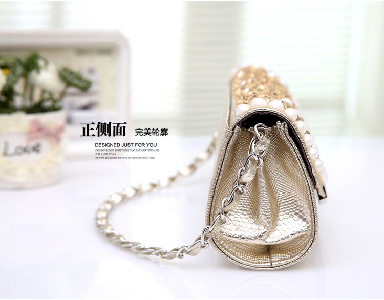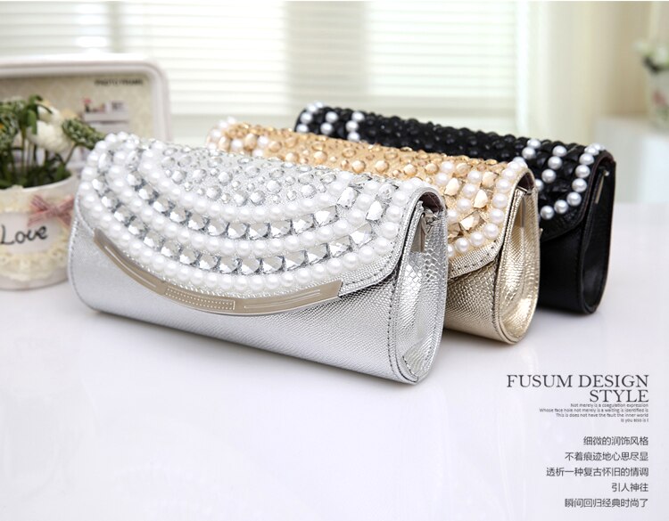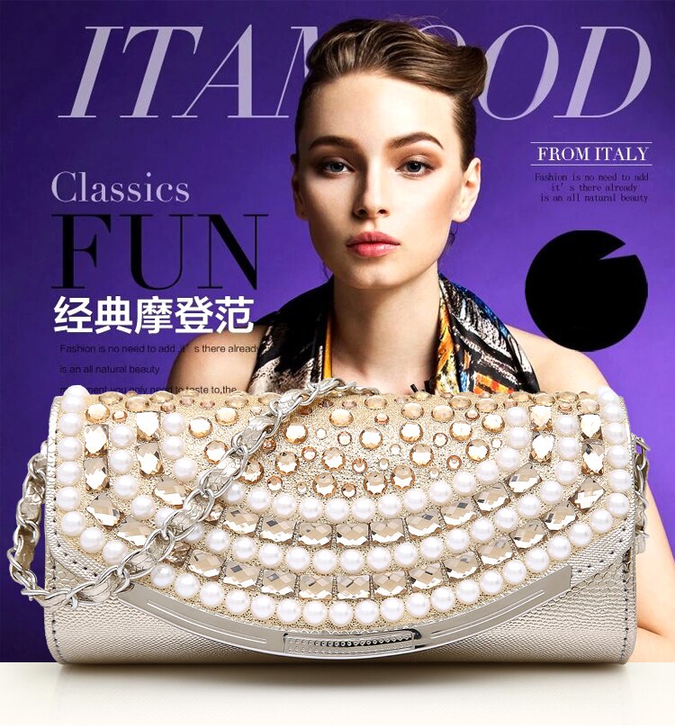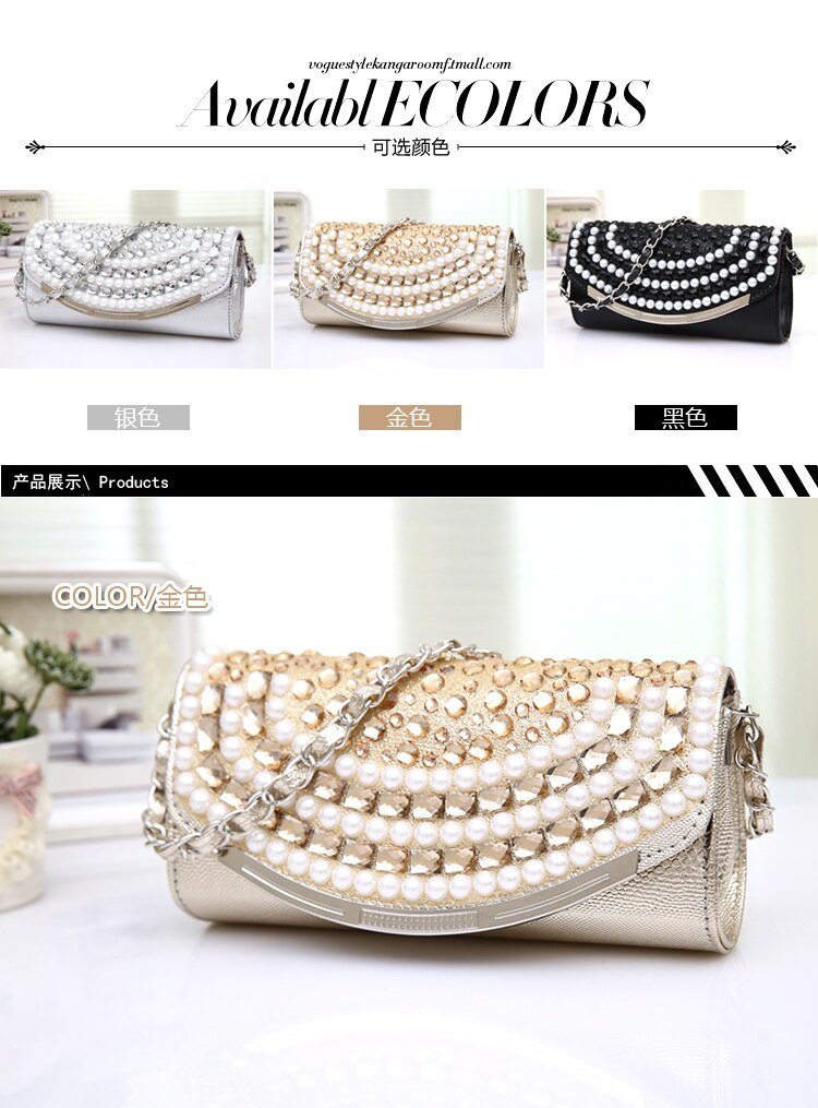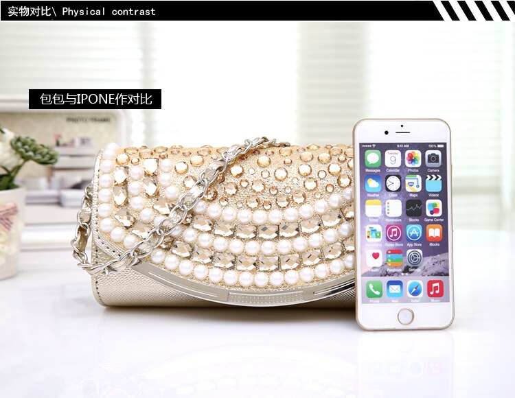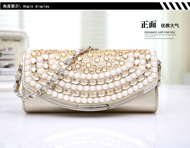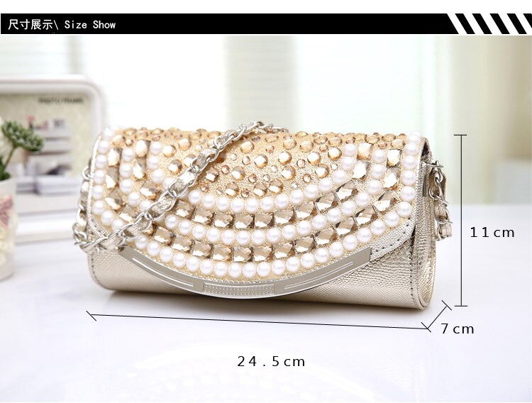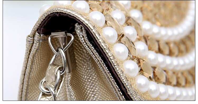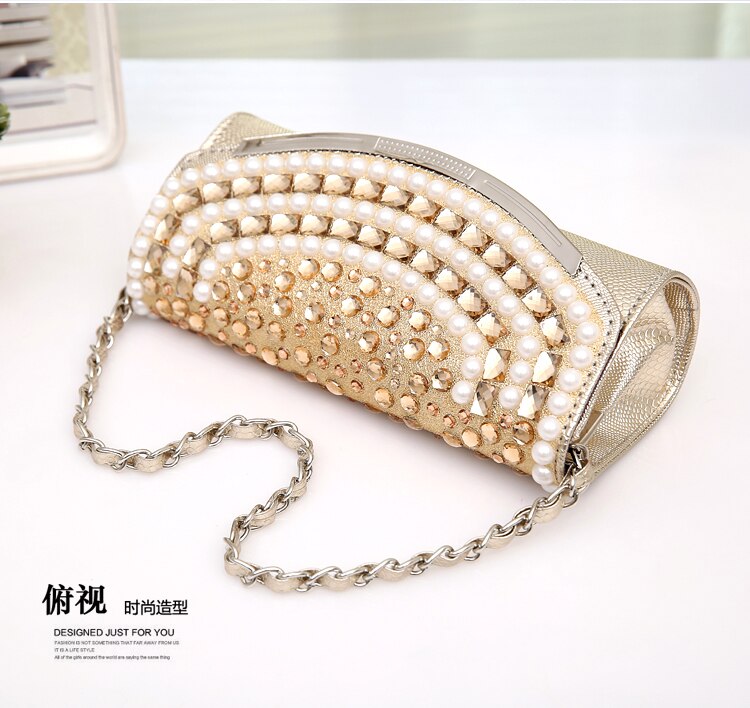 Fashion Gold/Silver Colour Party Ladies Evening Clutch Bags Chain Women Shoulder Crossbody Bags with Luxury Pearl