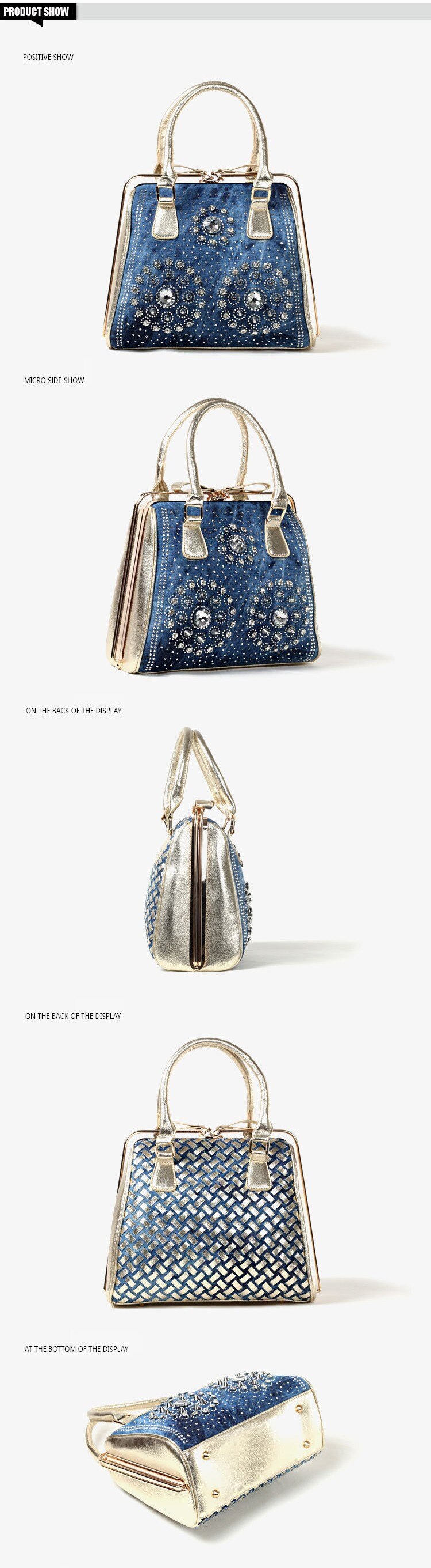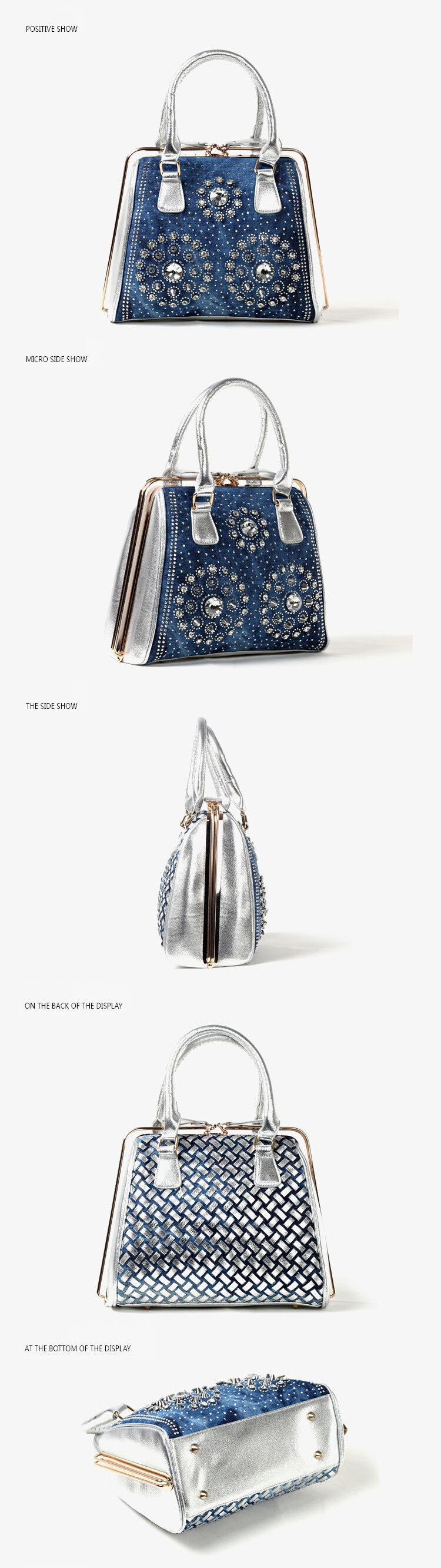 New fashion women handbags designer diamond decoration denim tote bags luxury ladies vintage bag
