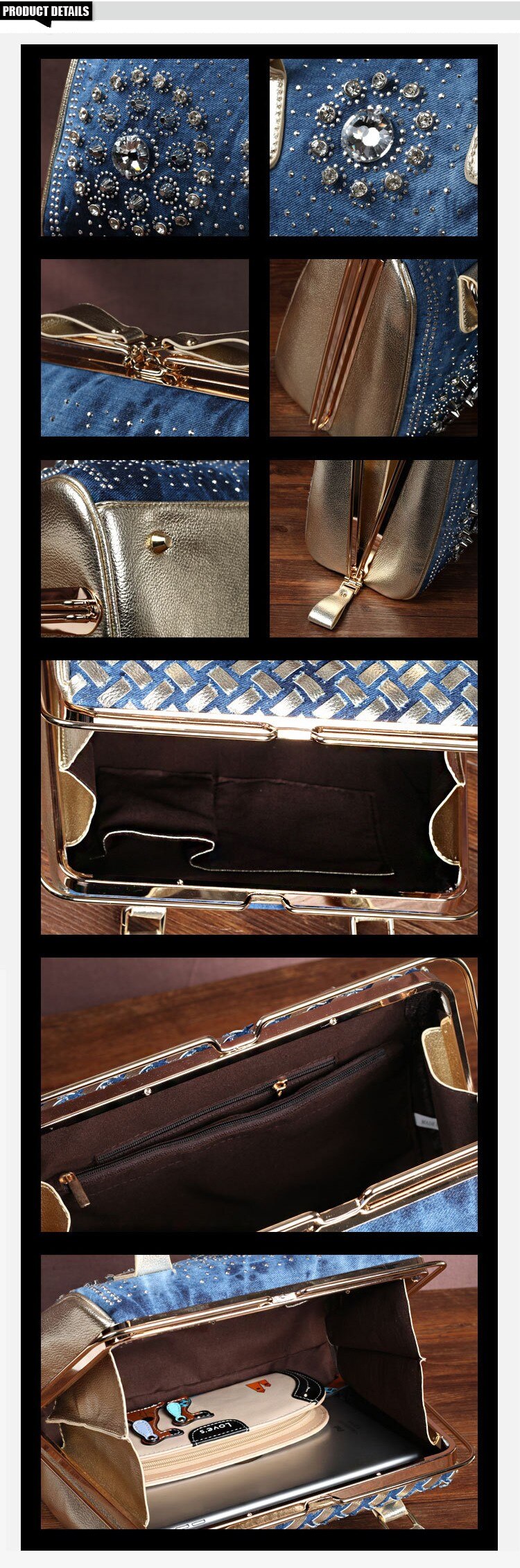 iPinee New Women Denim Bags Sweet Blue Pattern High Quality Handbags With Diamond Ladies Tote Bag Messenger Bags $155.00