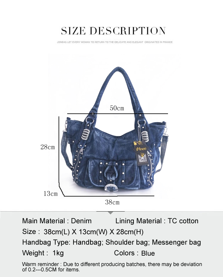 iPinee High Quality Denim Women Handbag Casual Large Capacity Hobos Bag Hot Sell Female Totes Bolsas Shoulder Bag