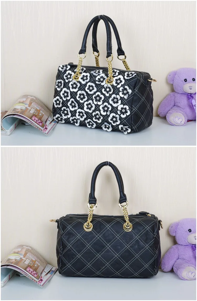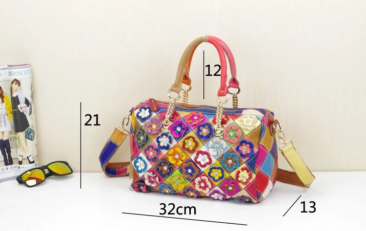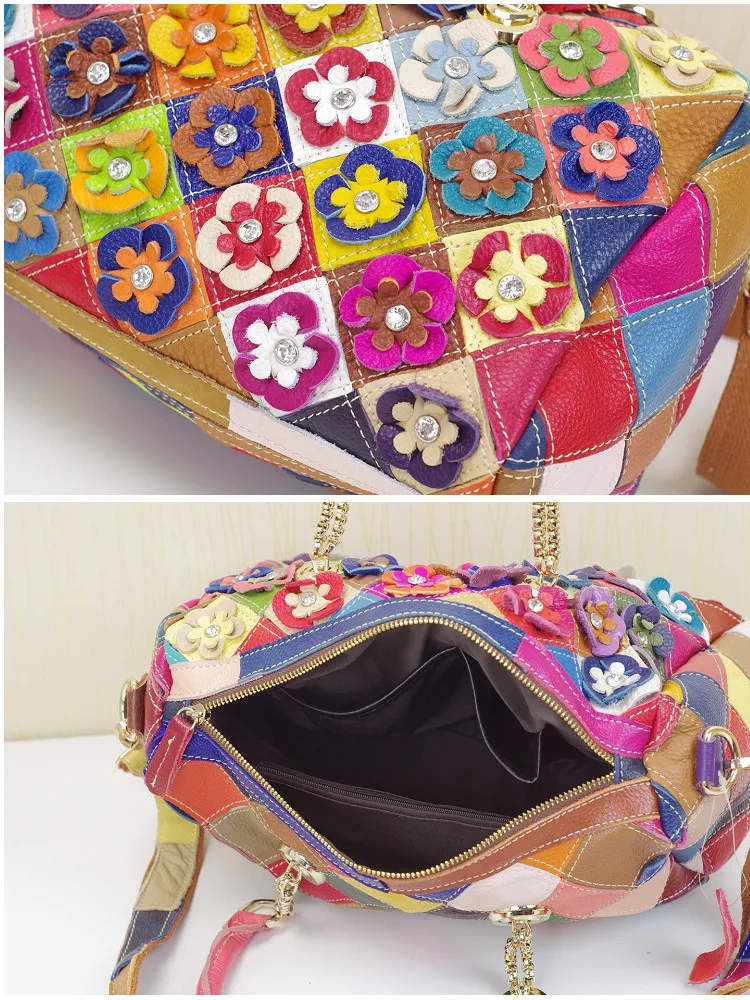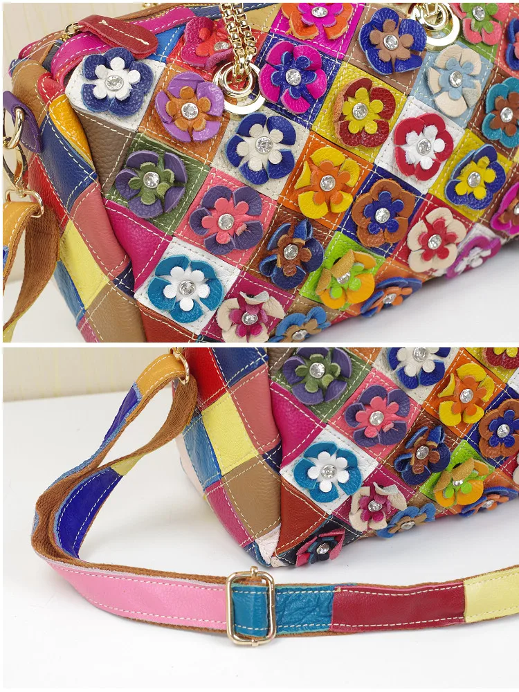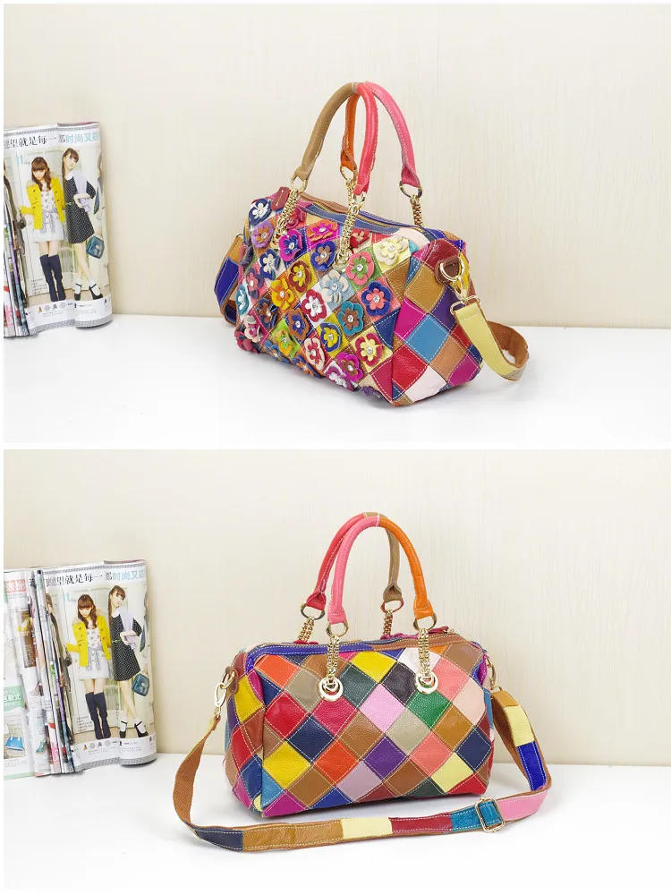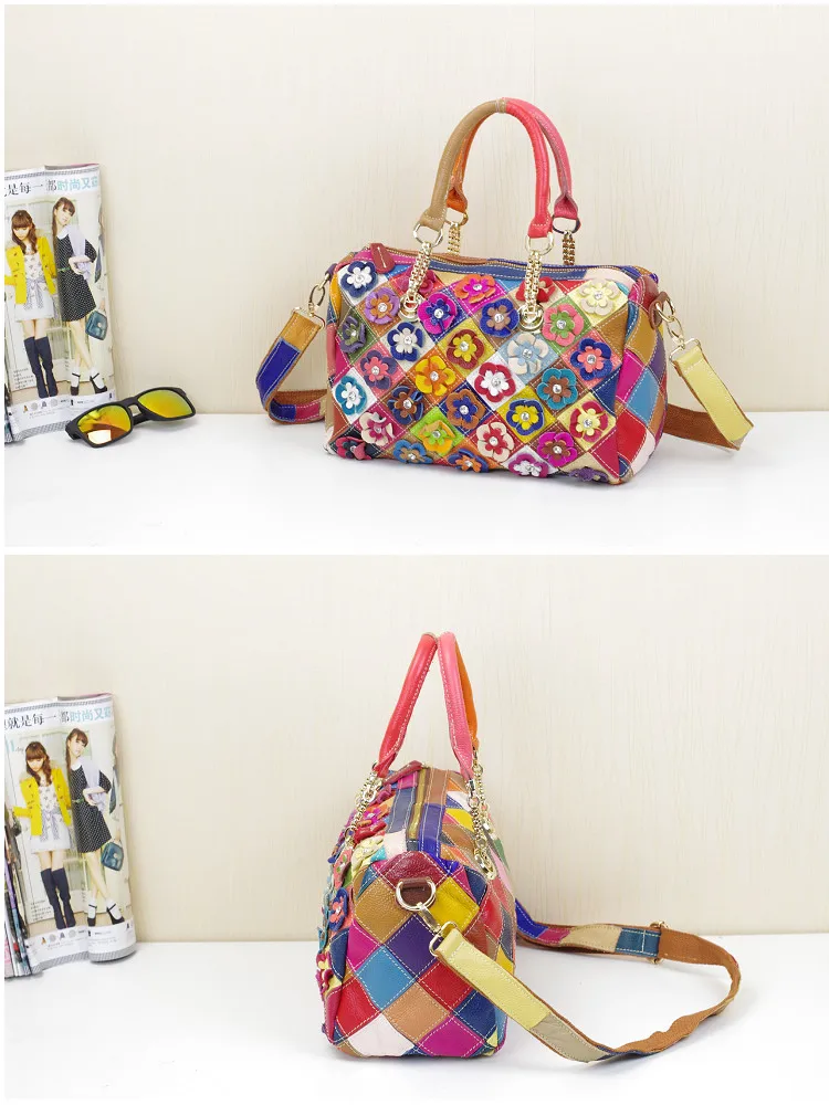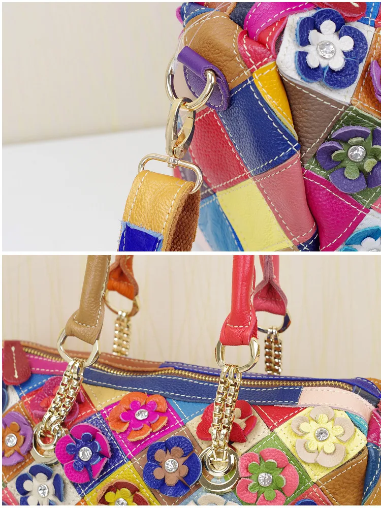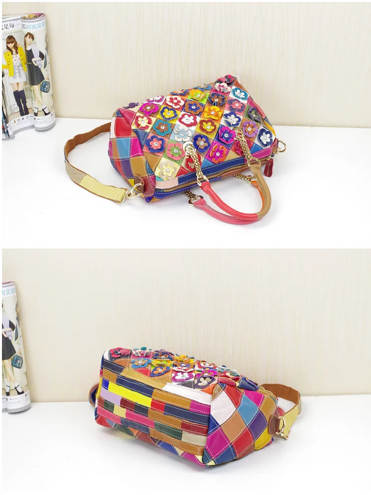 iPinee New 100% Genuine Leather Handbags Women Fashion Patchwork Flowers Bags Shoulder Bag Tote Colorful