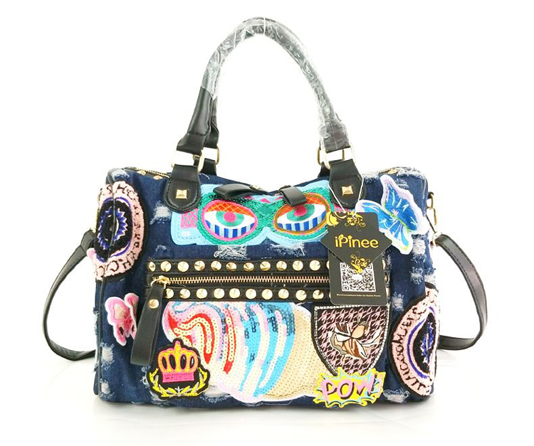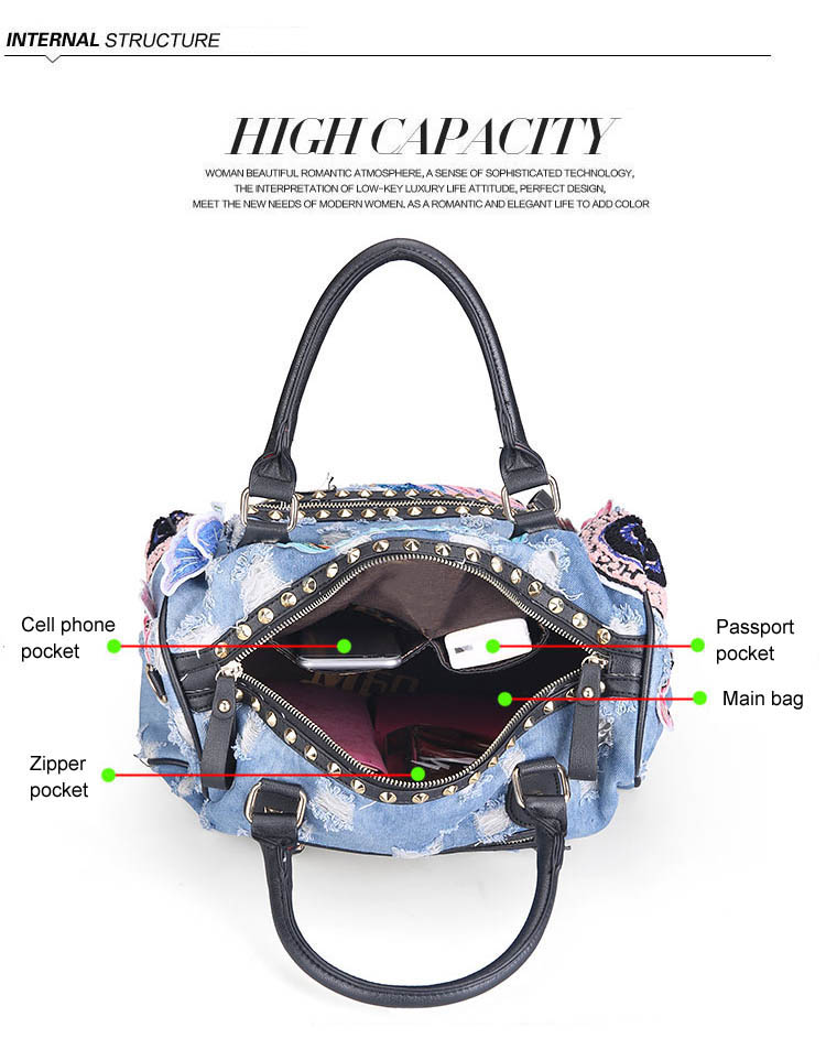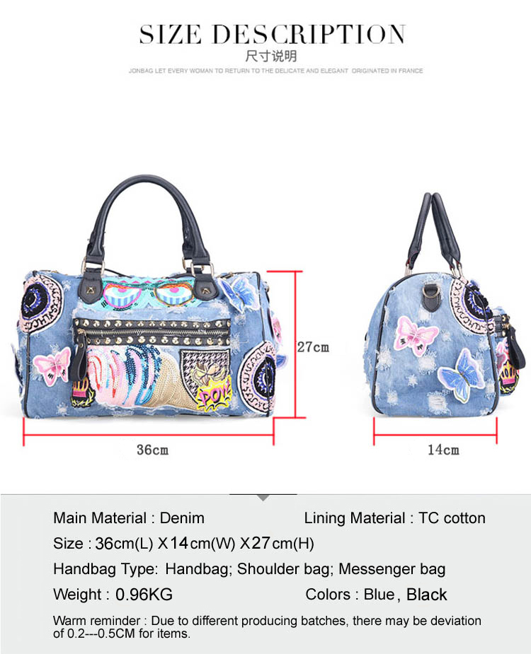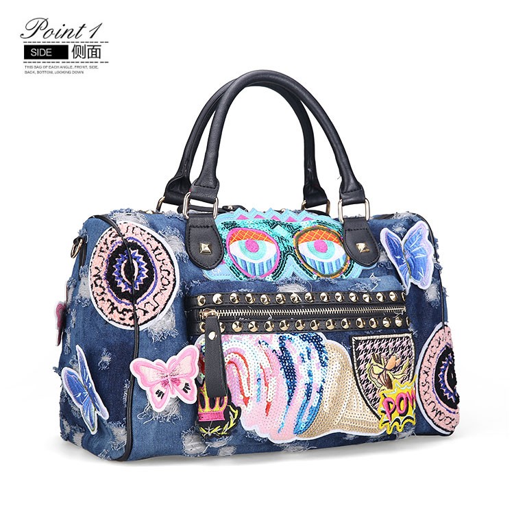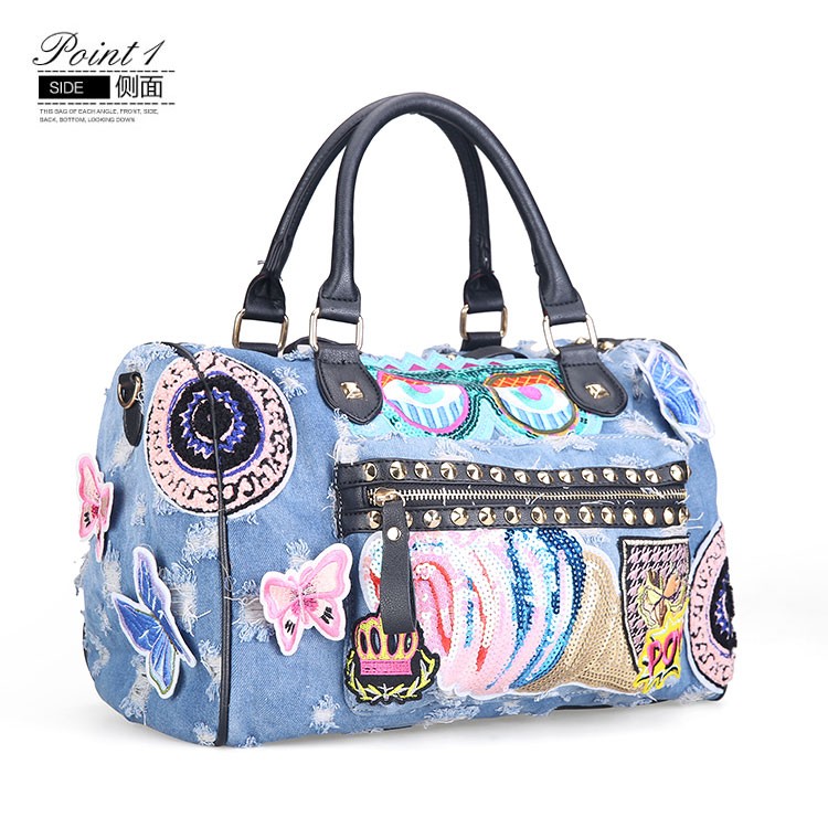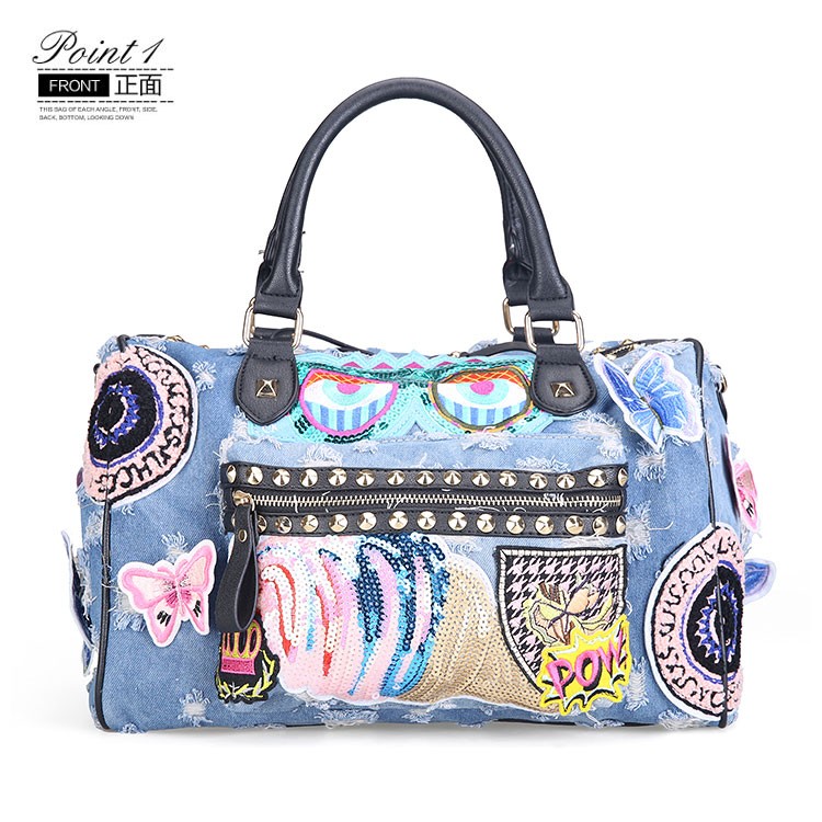 New 2018 Women Luggage Travel Bags Cute Cartoon Daypack Denim Bags Handbags Fashion Shoulder Bag Female