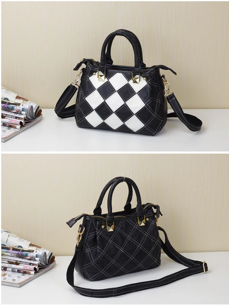 New Fashion Cow Leather Shoulder Bag Ladies Casual Handbags Elegant Style Colorful Block Plaid Design Women Bags
