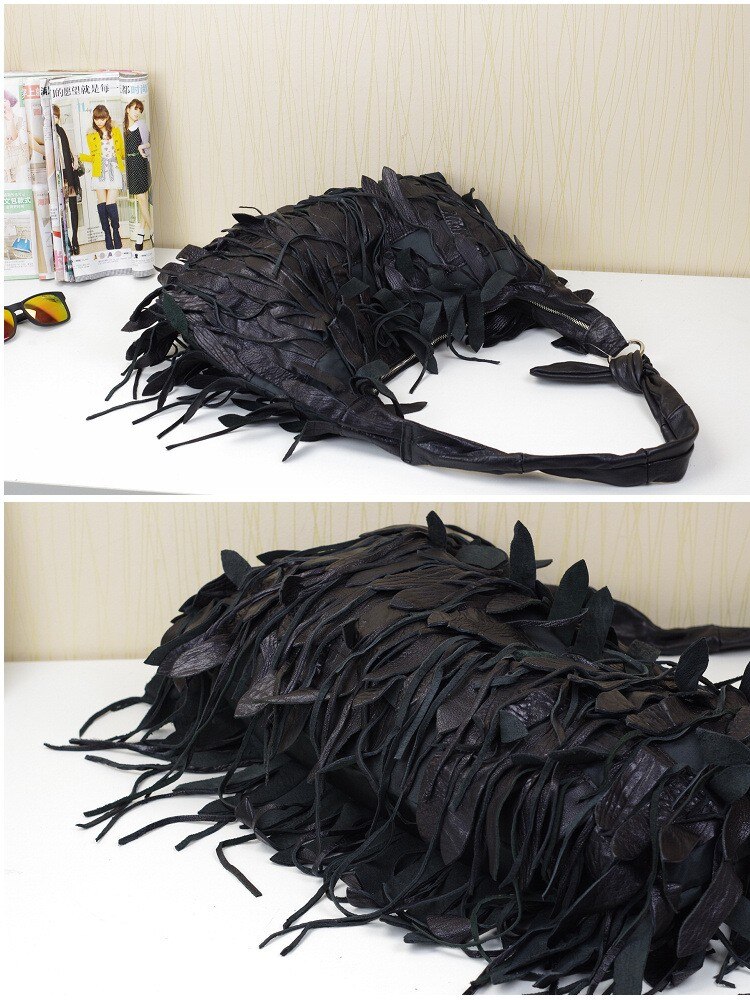 2019 New Leisure Fringed Genuine Leather Shoulder Bags Diagonal Korean Dumplings Tassels Crossbody Bags For Ladies