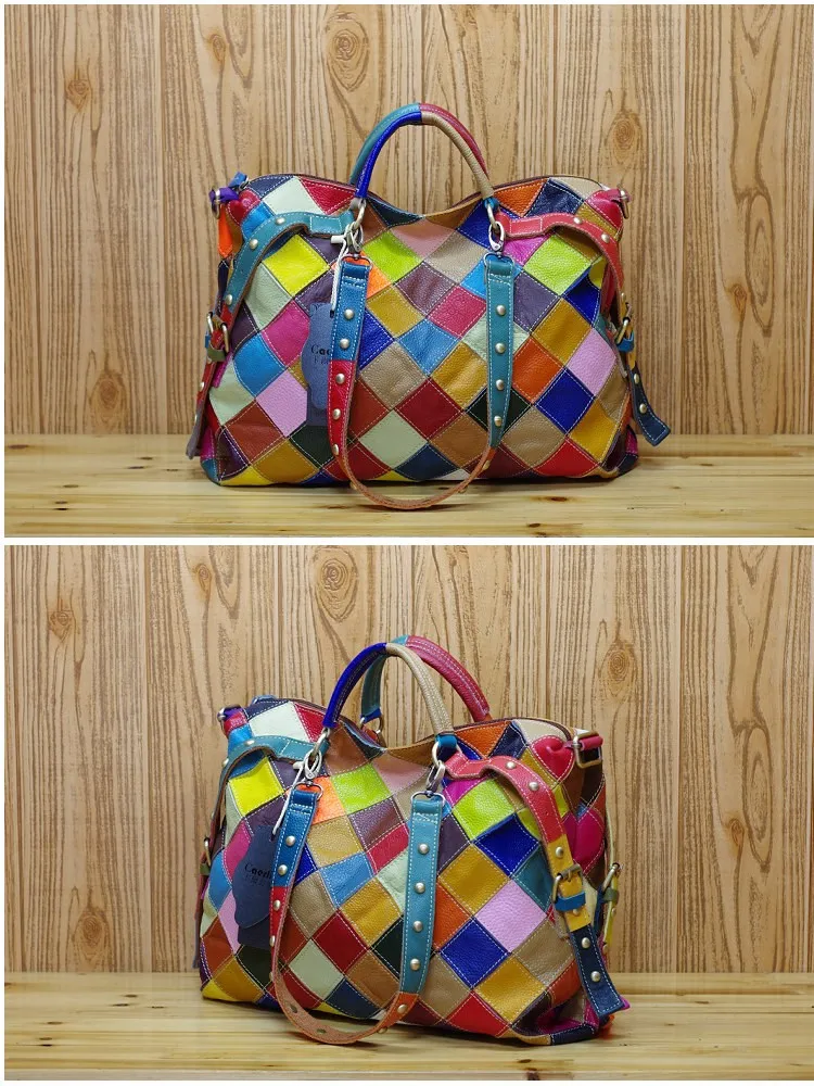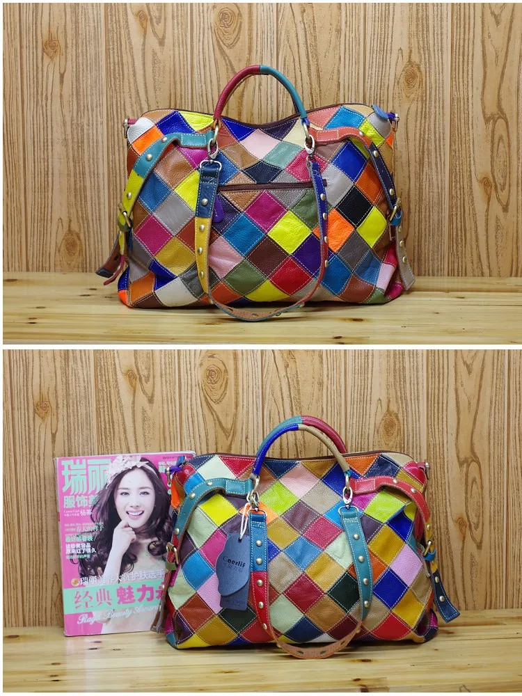 New Women Bags 2018 Casual Colorful Blocks Patchwork Women Tote Bags Genuine Leather Ladies Handbags
