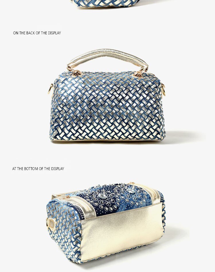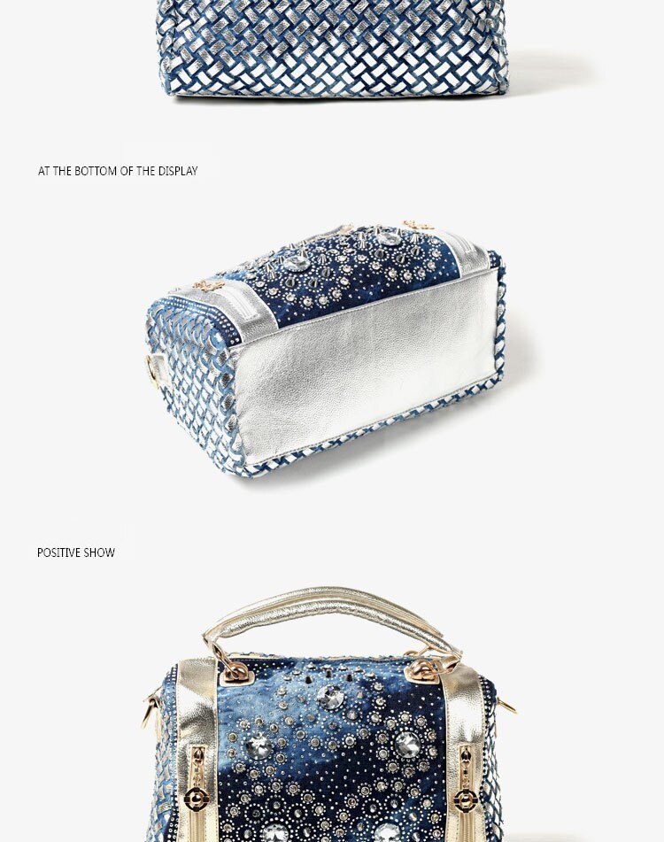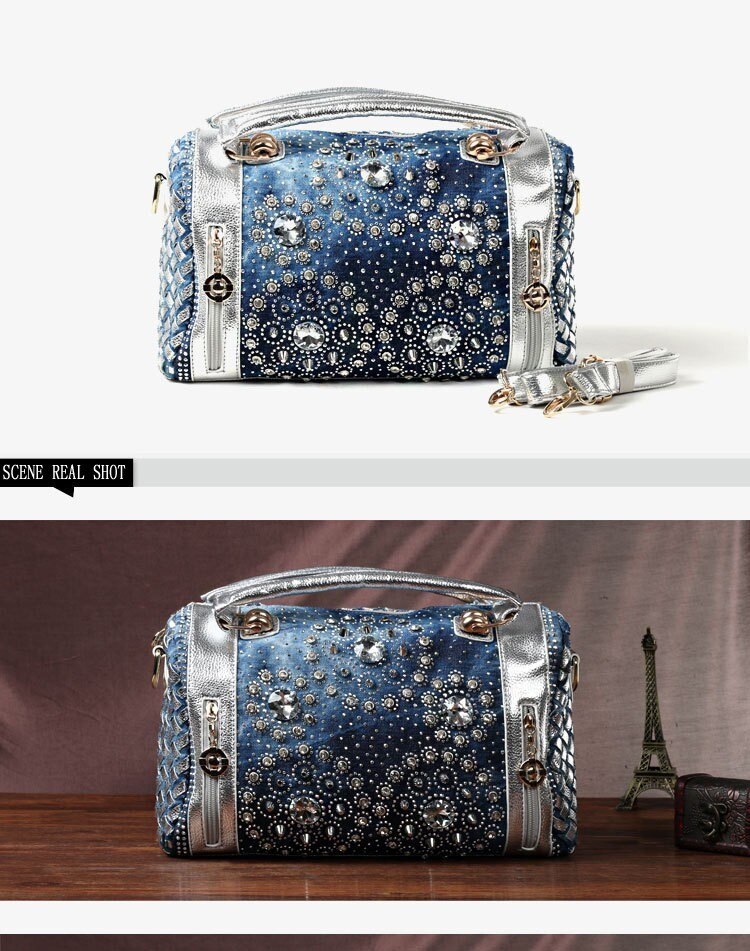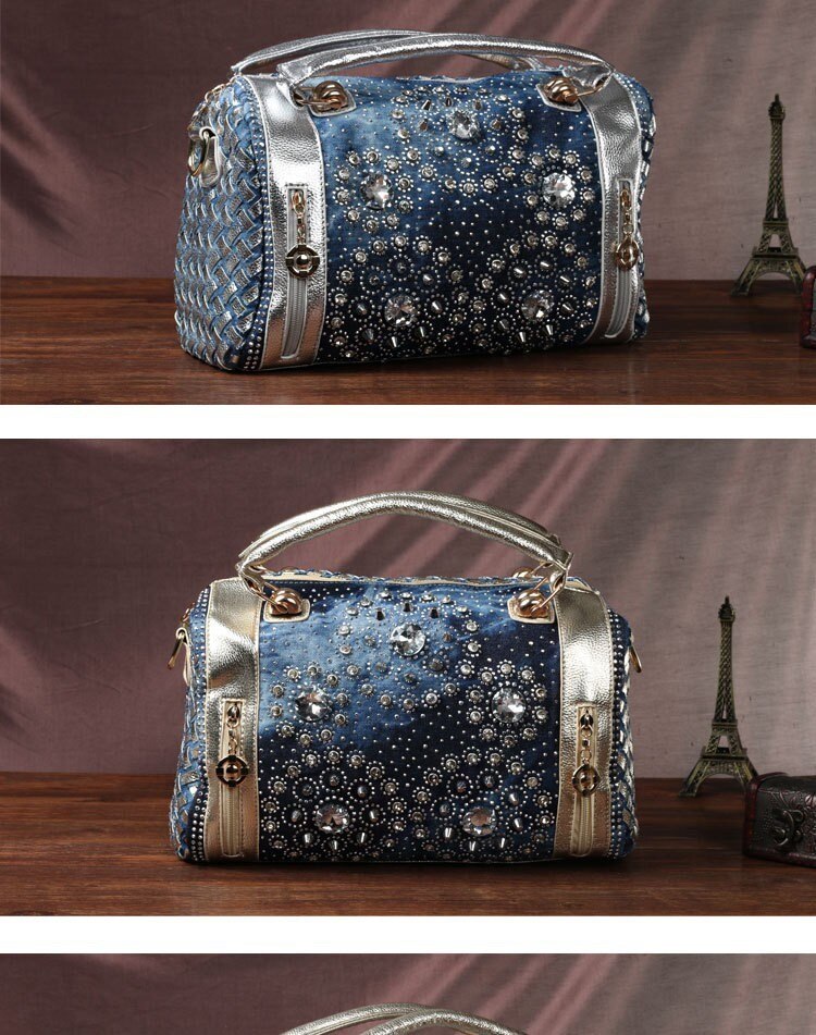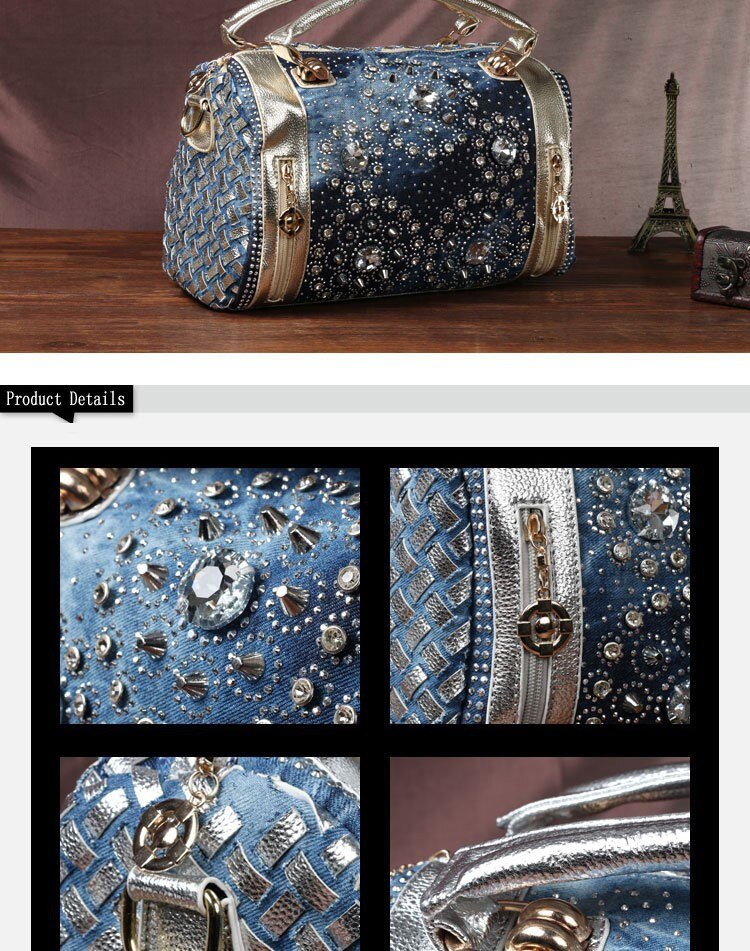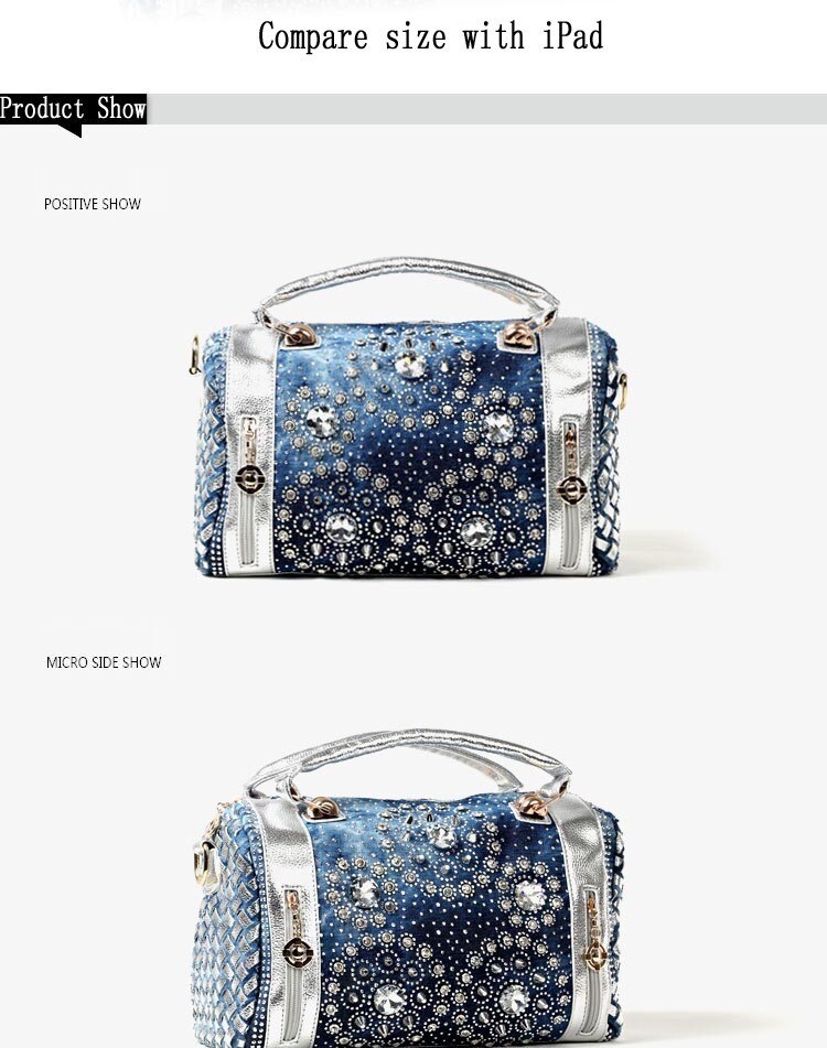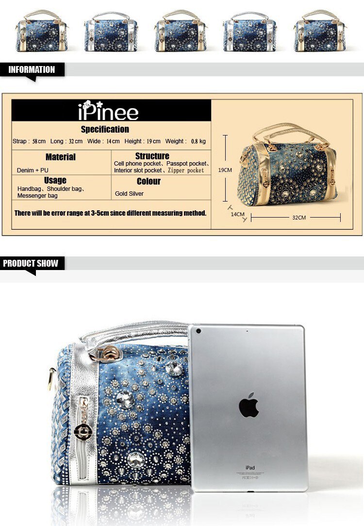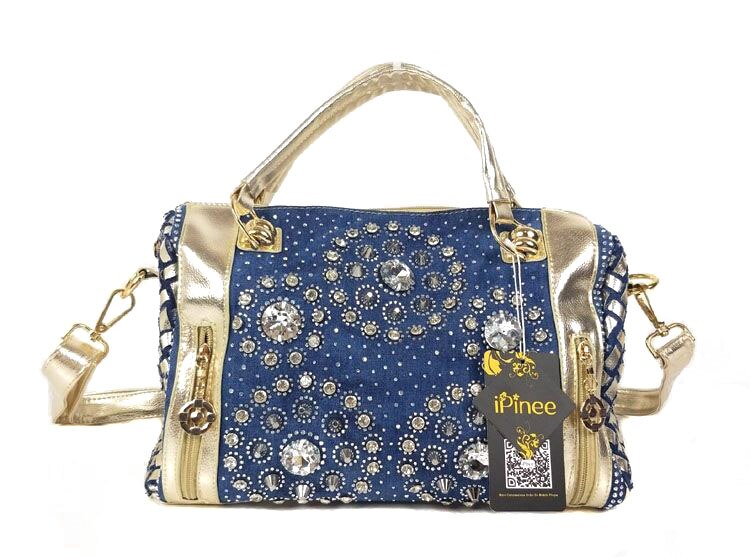 iPinee fashion women handbags designer diamond decoration denim tote bags luxury ladies vintage bag