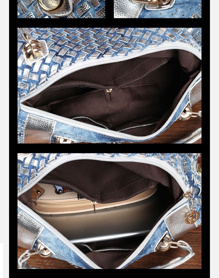 iPinee Fashion Denim Jean Bags Female Multiple Pockets Shoulder Bags Diamante Women Bags Bolsas