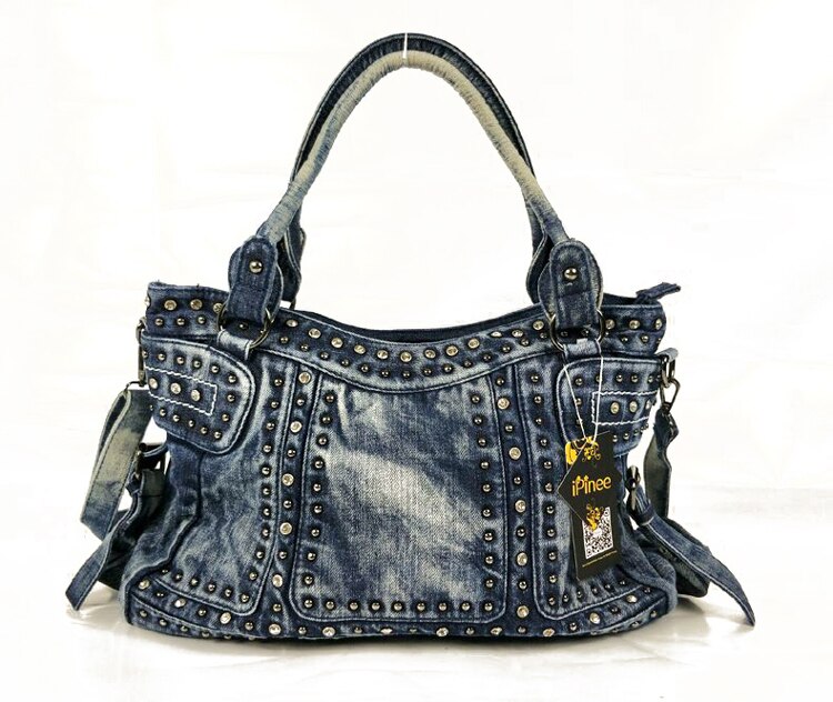 iPinee New Bee Denim Women Handbags Shoulder Bag For Female Designer Rivet Ladies Hand bag Famous iPinee Brand Tote