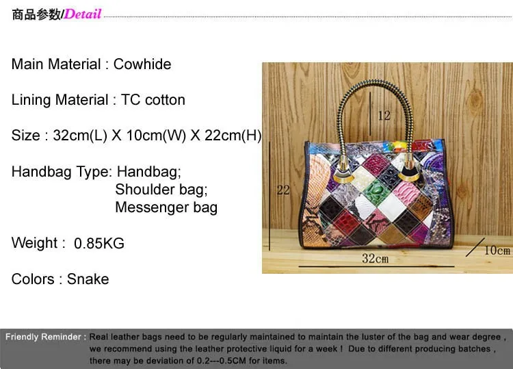 iPinee Women Cowhide Leather Snake Pattern 100% REAL LEATHER Handmade Patchwork Women Shoulder Bags Shiny Color Block