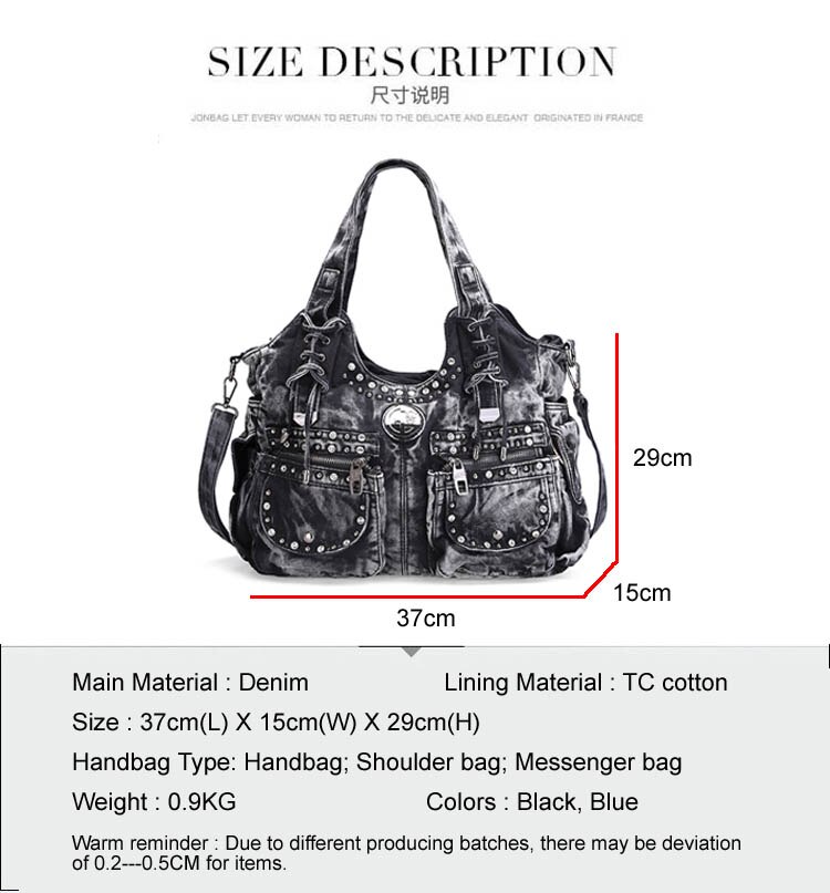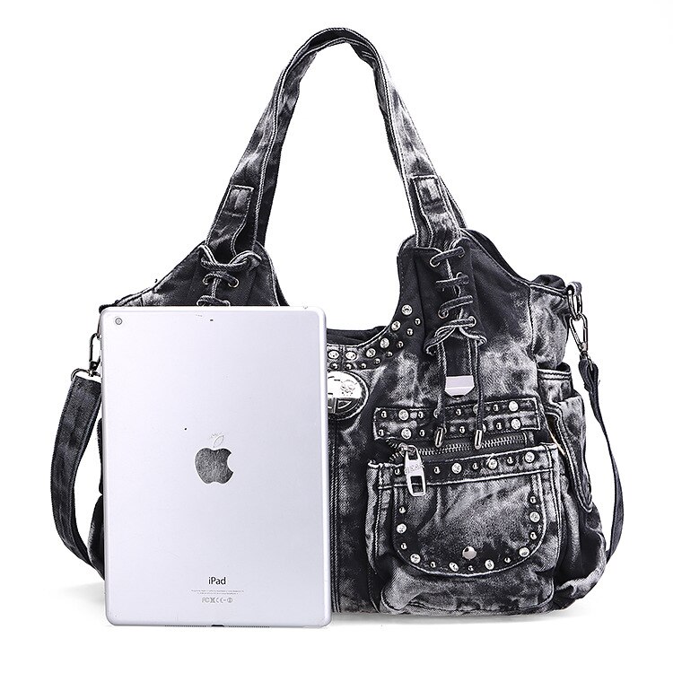 iPinee Women Fashion Bags Famous Brand Ladies Denim Handbag Blue Crossbody Bag for Women Casual Motorcycle Bag