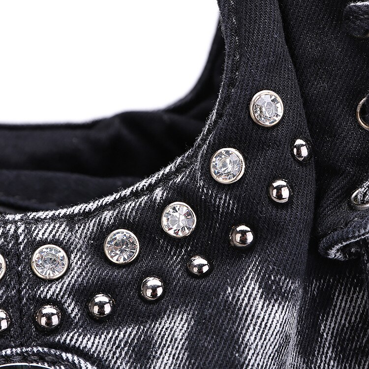 Home Vintage Denim Bags iPineeNew Design Brand Elegant Rhinestone Fashion Women Shoulder Bag Jeans Casual Ladies Denim Handbags Female Tote Bags Mochila