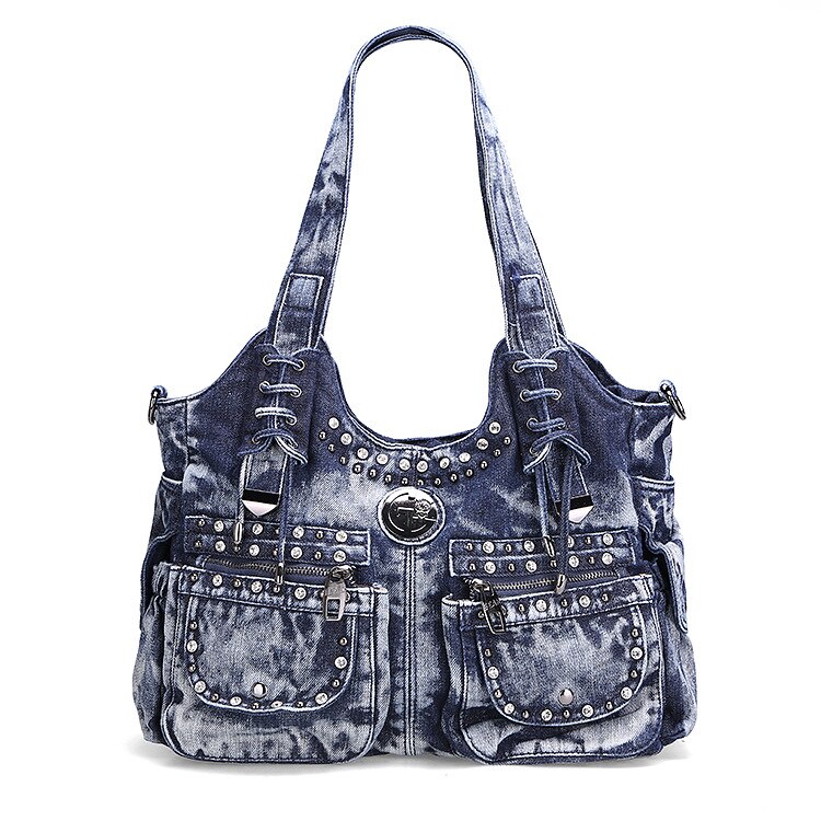 New Design Brand Elegant Rhinestone Fashion Women Shoulder Bag Jeans Casual Ladies Denim Handbags Female Tote Bags Mochila